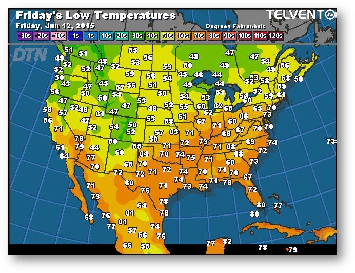 Prévisions des températures les plus basses (degrés Farenheit)