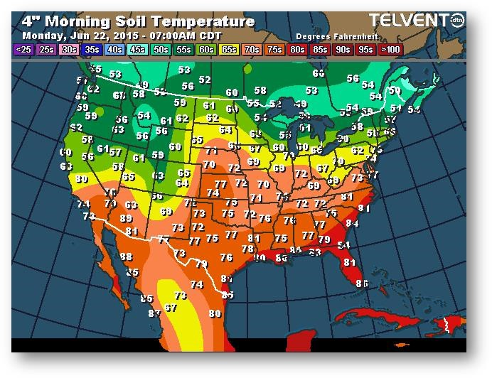 Température du sol en matinée à une profondeur de 4 pouces (degrés Farenheit)