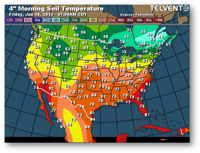 Température du sol en matinée à une profondeur de 4 pouces (degrés Farenheit)