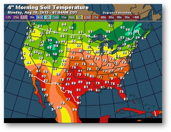 Température du sol en matinée à une profondeur de 4 pouces (degrés Farenheit)