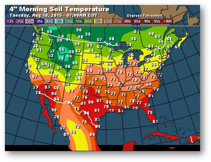 Température du sol en matinée à une profondeur de 4 pouces (degrés Farenheit)