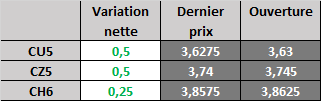 Contrat à terme du maïs à 6 h HNC : en légère hausse