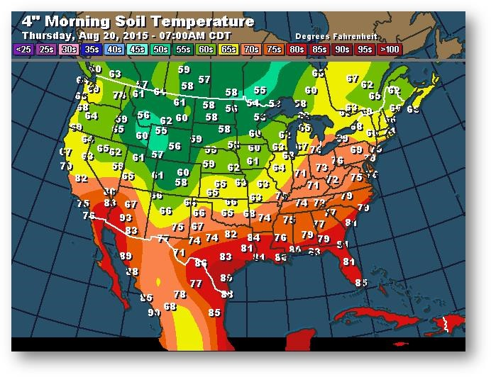 Température du sol en matinée à une profondeur de 4 pouces (degrés Farenheit)