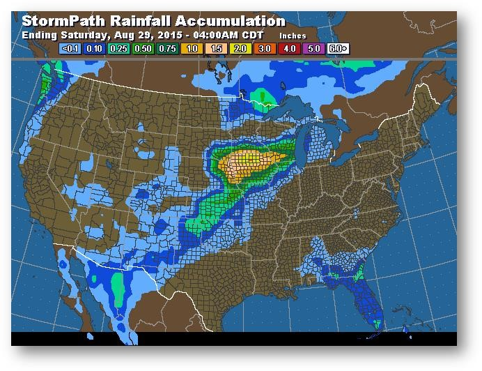 Trajectoire de tempête – Accumulation de précipitations (pouces)