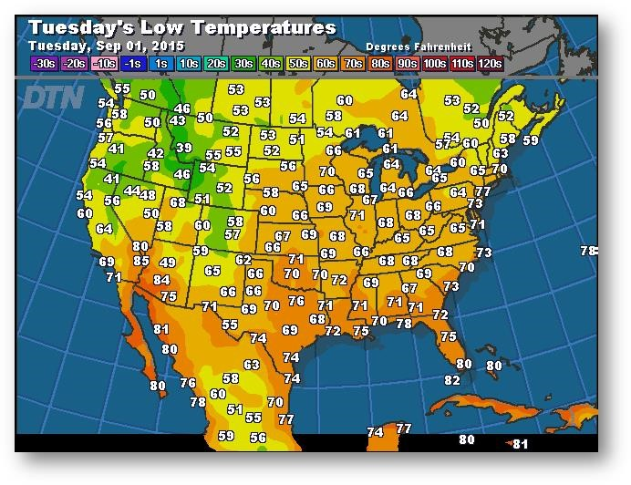La semaine dernière, les prix du maïs sont restés à l'intérieur d'une fourchette étroite malgré l'agitation dans les marchés financiers mondiaux. Il semble que les prix se dirigent vers un test de 3,90-4,00$, mais ils sont retenus par la faiblesse dans la blé alors que le dollar américain reprend du poil de la bête. De nombreux analystes considèrent toujours que l'évaluation du rendement du USDA à 168,8 boisseaux/acre est trop élevée. Les estimations des cultures par les firmes privées débuteront cette semaine; FC Stone donnera la coup d'envoi après la clôture mardi. Le temps chaud et sec prévu pour les prochains 7 à 10 jours accélérera la maturation dans l'est de la Corn Belt. Le rapport COT a indiqué une position longue de 80 000 contrats en date du 25 août, ce qui représente une augmentation de 9000 contrats par rapport à la semaine précédente. Si le contrat de décembre (CZ5) clôture sous 3,8125$, ce sera le deuxième mois consécutif de recul.