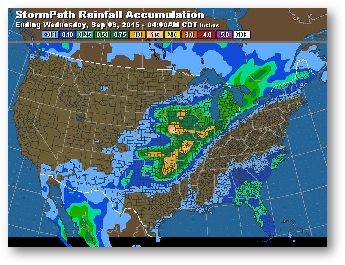 Trajectoire de tempête – Accumulation de précipitations (pouces)