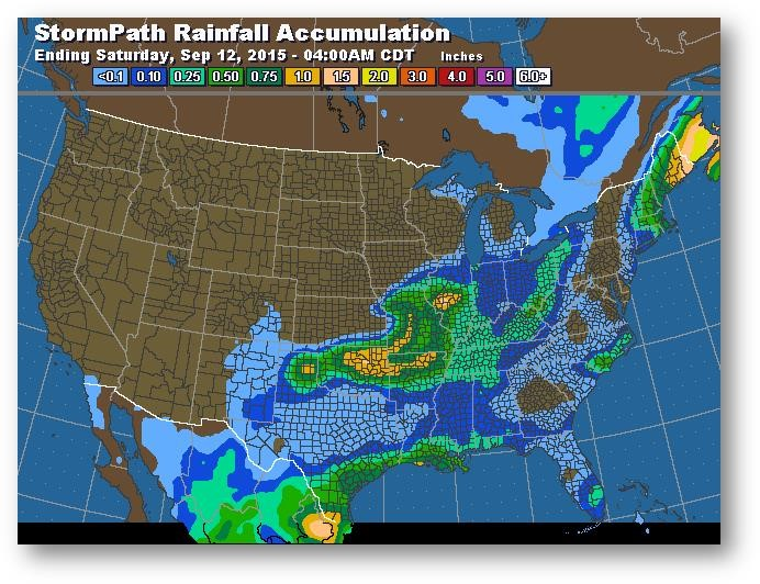Trajectoire de tempête – Accumulation de précipitations (pouces)