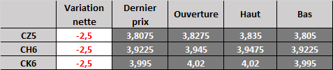 Prix calculé en fonction du rapport 201 du CME hier :