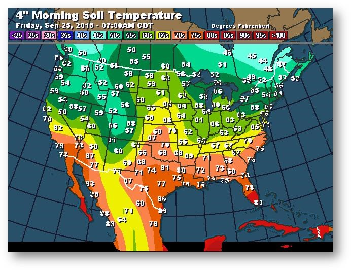 Température du sol en matinée à une profondeur de 4 pouces (degrés Farenheit)