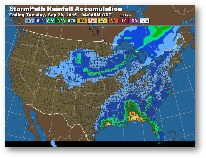 Trajectoire de tempête – Accumulation de précipitations (pouces)
