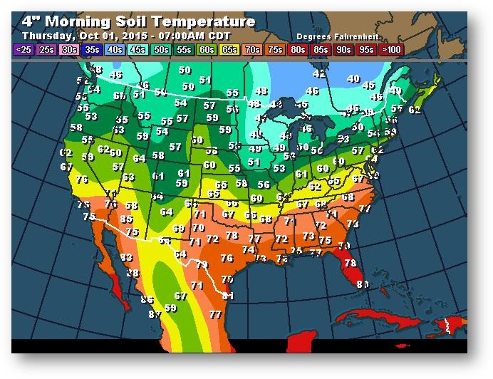 Température du sol en matinée à une profondeur de 4 pouces (degrés Farenheit)