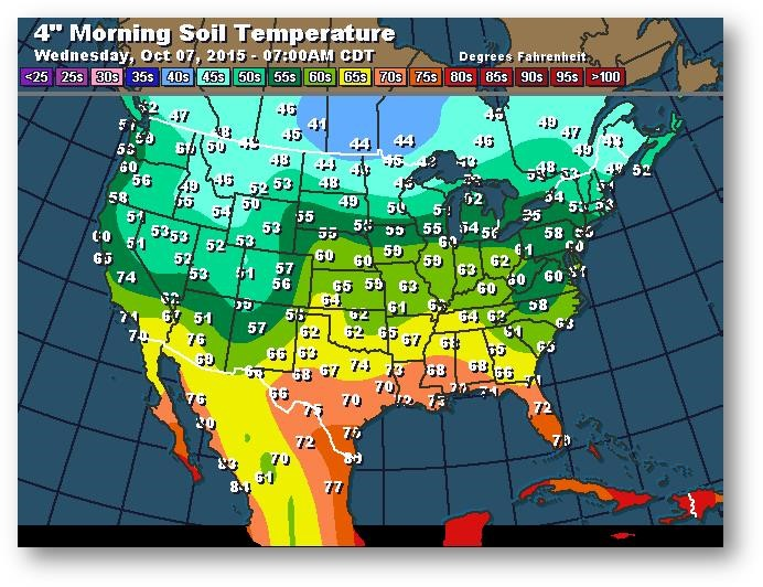 Température du sol en matinée à une profondeur de 4 pouces (degrés Farenheit)
