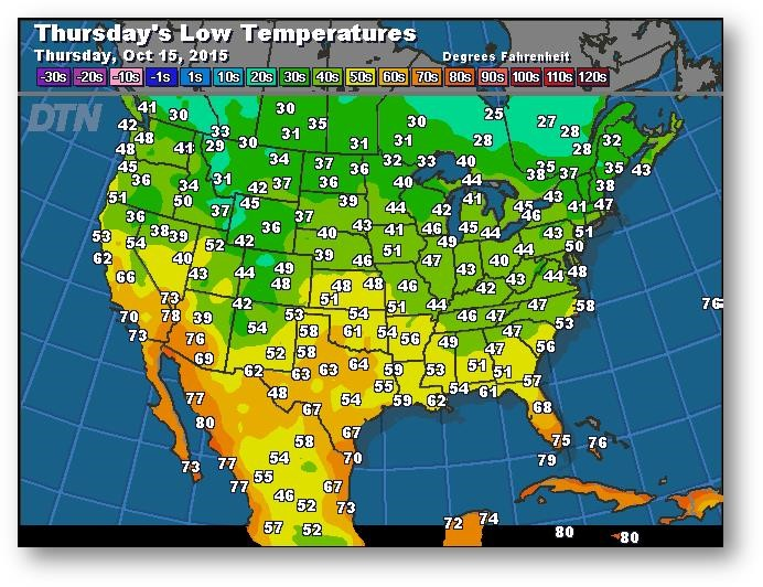 Prévisions des températures les plus basses (degrés Farenheit)