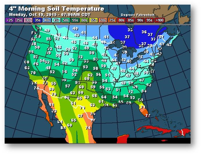 Température du sol en matinée à une profondeur de 4 pouces (degrés Farenheit)