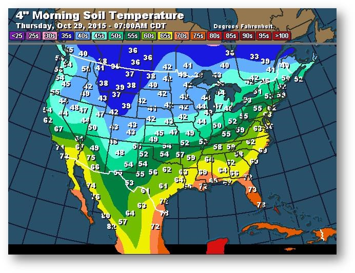 Température du sol en matinée à une profondeur de 4 pouces (degrés Farenheit)
