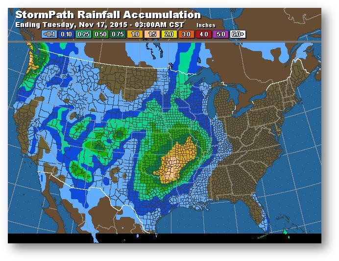 Trajectoire de tempête – Accumulation de précipitations (pouces)