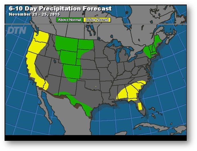 Prévisions de précipitation pour les 6 à 10 prochains jours