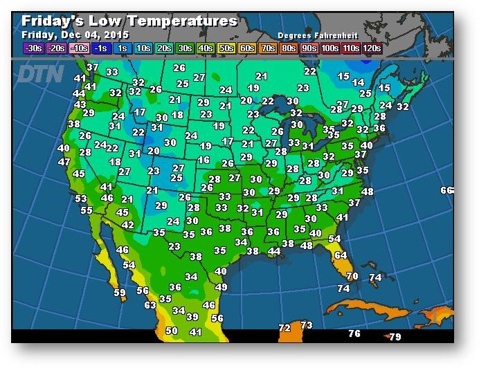 Prévisions des températures les plus basses (degrés Farenheit)