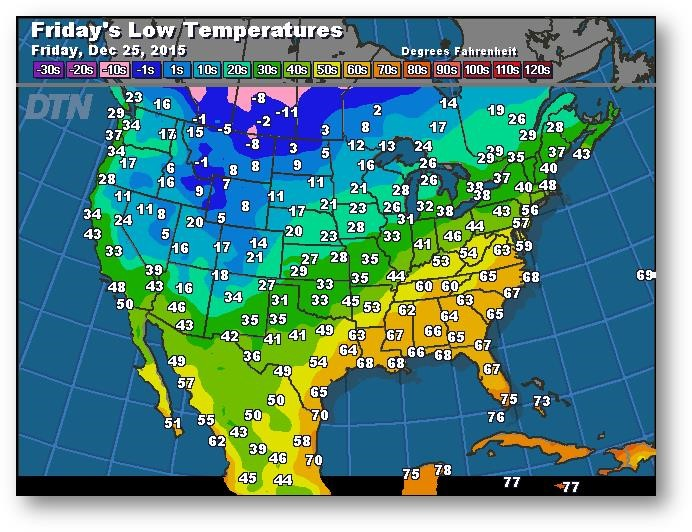 Prévisions des températures les plus basses (degrés Farenheit)