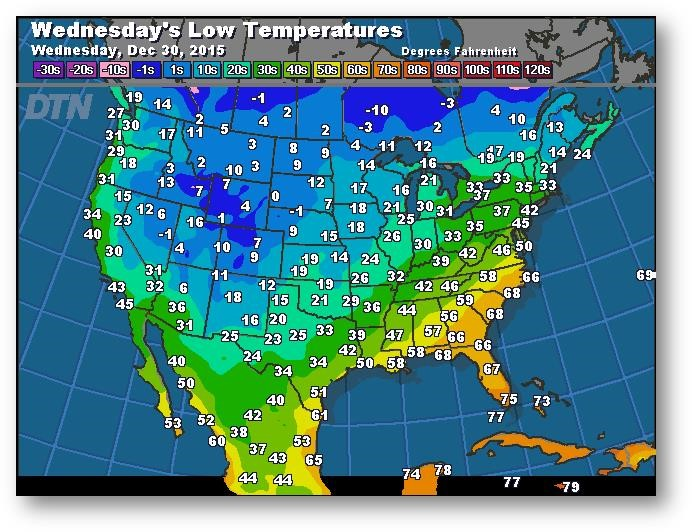 Prévisions des températures les plus basses (degrés Farenheit)