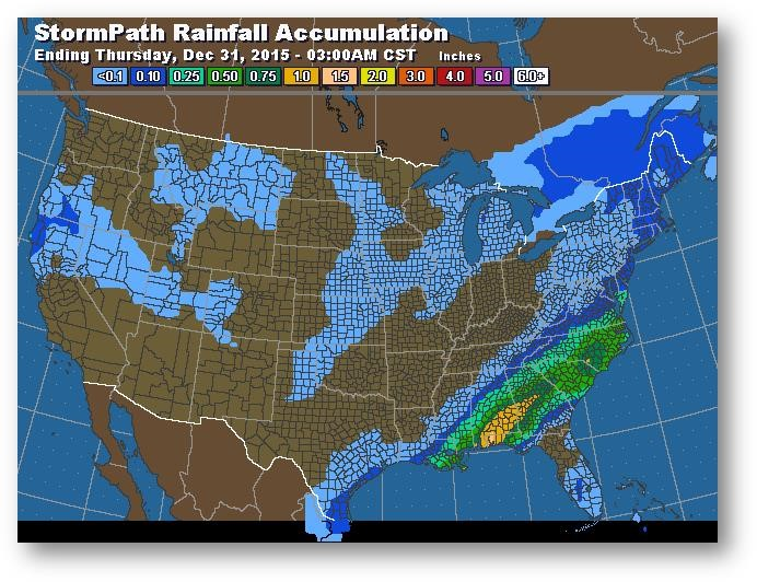 Trajectoire de tempête – Accumulation de précipitations (pouces)
