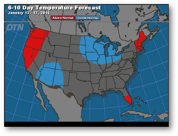 Prévisions de températures pour les 6 à 10 prochains jours
