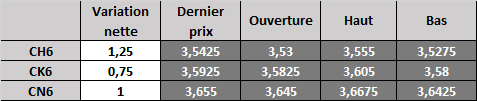 Prix calculé en fonction du rapport 201 du CME hier :
