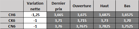 Prix calculé en fonction du rapport 201 du CME hier :