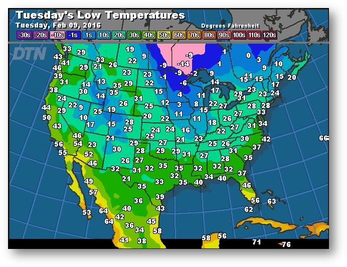 Prévisions des températures les plus basses (degrés Farenheit)
