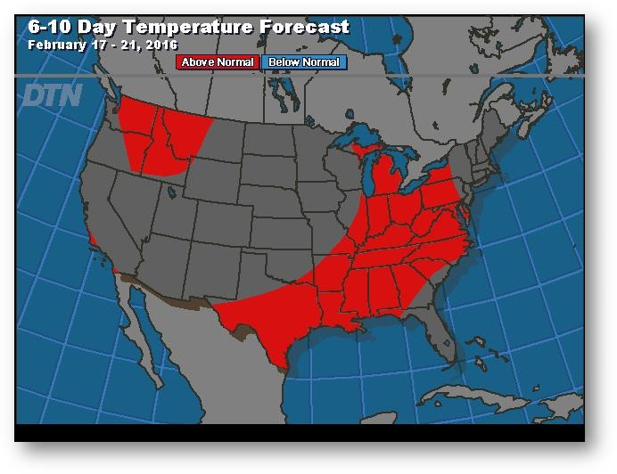 Prévisions de températures pour les 6 à 10 prochains jours