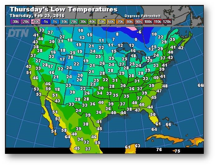 Prévisions des températures les plus basses (degrés Farenheit)