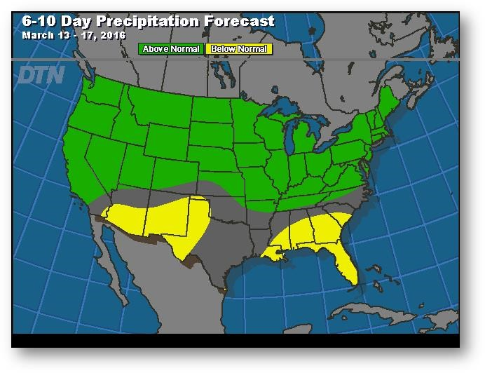 Prévisions de précipitation pour les 6 à 10 prochains jours