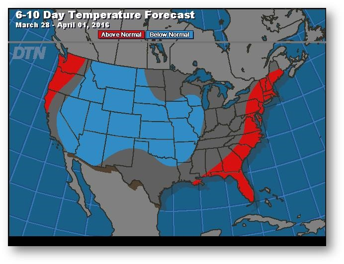 Prévisions de températures pour les 6 à 10 prochains jours