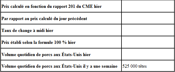 Évolution du prix calculé en fonction du rapport 201 du CME : baisse prévue de