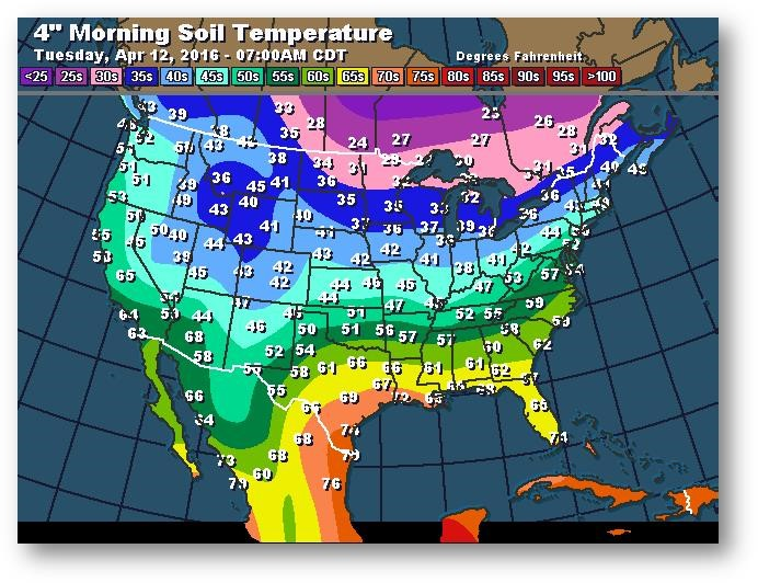 Température du sol en matinée à une profondeur de 4 pouces (degrés Farenheit)