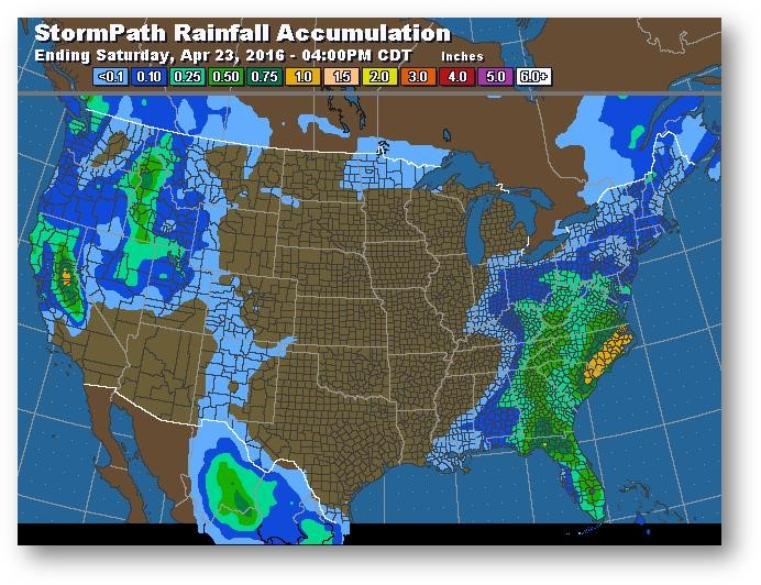 Trajectoire de tempête – Accumulation de précipitations (pouces)