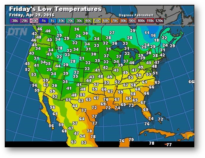 Prévisions des températures les plus basses (degrés Farenheit)