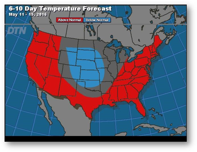 Prévisions de températures pour les 6 à 10 prochains jours