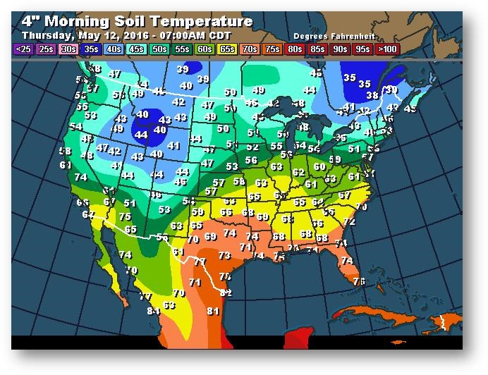 Température du sol en matinée à une profondeur de 4 pouces (degrés Farenheit)