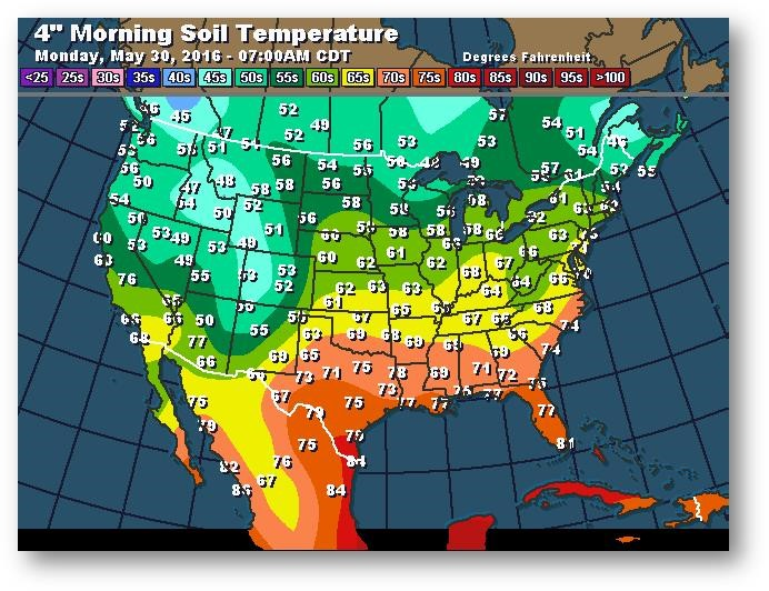 Température du sol en matinée à une profondeur de 4 pouces (degrés Farenheit)