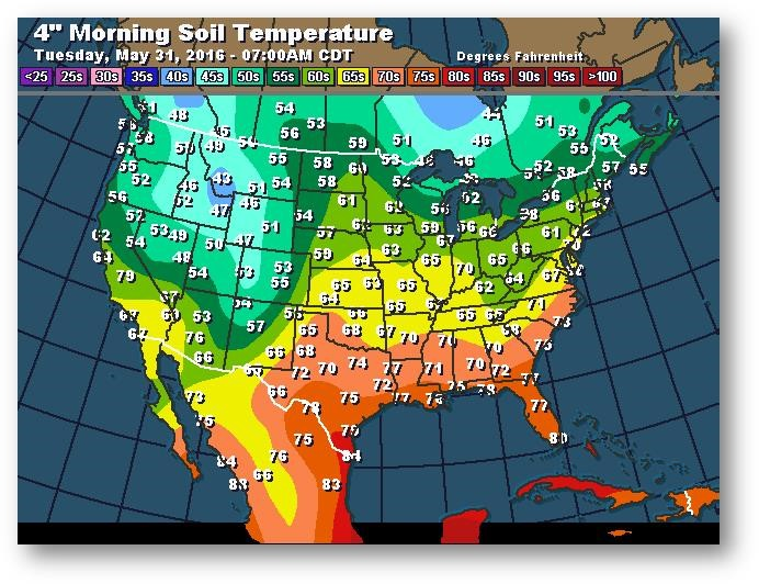 Température du sol en matinée à une profondeur de 4 pouces (degrés Farenheit)