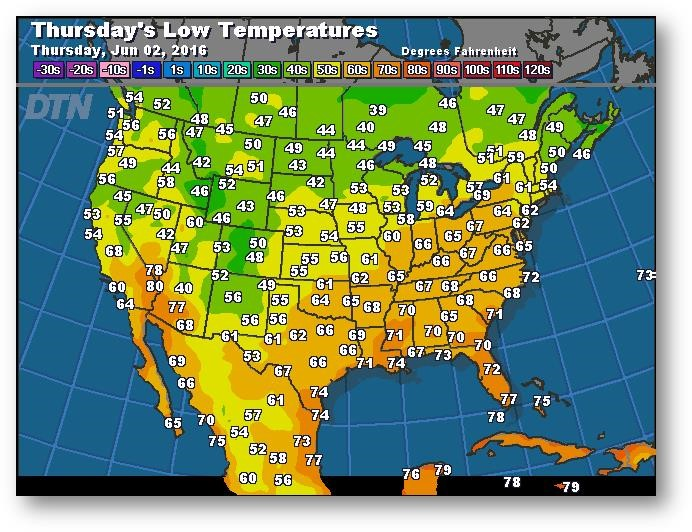 Prévisions des températures les plus basses (degrés Farenheit)