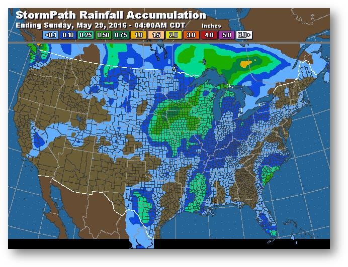 Les prix ont continué de tomber au cours de la nuit à la suite d'une journée de renversement à la baisse. Les conditions de survente technique, la faiblesse dans le blé et les conditions météo favorables dans la Corn Belt pour les 10-14 prochains jours ont tous contribué à la pression à la baisse sur le maïs. Les inspections à l'exportation ont été faibles hier à 786 407 tonnes, résultat inférieur aux attentes du marché. Les inspections correspondent à 65% de la prévision du USDA comparativement à une moyenne de 72% pour les cinq dernières années. L'ensemencement a progressé de 8% et est maintenant complété à 94%, soit le même résultat que l'année dernière et tout juste devant la moyenne de cinq ans à 92%. Le NASS a également publié sa première évaluation de l'état des cultures de la saison, et la maïs est à 72% dans la catégorie bon/excellent (74% il y a un an). Les conditions météo seront le principal moteur des prix dans les prochaines semaines. Le marché maintiendra une certaine prime de risque liée à la météo, mais la progression des semis, la météo favorable à court terme et des stocks de report de plus de deux milliards de boisseaux laissent croire que la hausse récente est suffisante.