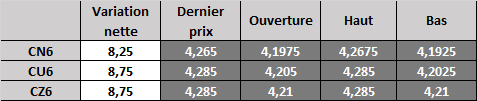 Évolution du prix calculé en fonction du rapport 201 du CME : hausse prévue de