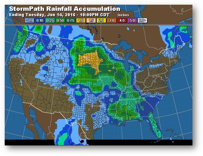 Au cours de la nuit, les prix ont grandement reculé; le contrat de juillet (CN6) a chuté de 0,12$ par rapport aux sommets d'hier. L'évaluation de l'état des cultures hier a été meilleure que ce qui était attendu avec 75% dans la catégorie bon/excellent, donc aucun changement depuis la semaine dernière et légère amélioration par rapport à l'an passé à 73%. On prévoit toujours des températures supérieures à la normale et des précipitations limitées à court terme, mais il semble que le marché en tienne déjà compte dans les prix actuels vu l'activité des fonds au cours de la dernière semaine. Les inspections à l'exportation hier ont révélé un excellent résultat de 1,697 million de tonnes, ce qui est bien au-dessus des prévisions, et il s'agit même d'un nouveau record hebdomadaire pour le mois de juin. Informa a publié son évaluation des superficies ensemencées; 92,56 millions d'acres pour le maïs (évaluation précédente à 93,37), ce qui confirme qu'une partie de la superficie a été transférée au soja. Les conditions météo continuent de diriger le marché. Les prix ont légèrement reculé au cours de la nuit, mais ce ne sera que passager à moins que les conditions météo changent réellement.