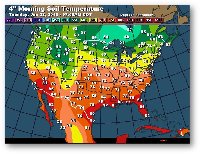 Température du sol en matinée à une profondeur de 4 pouces (degrés Farenheit)