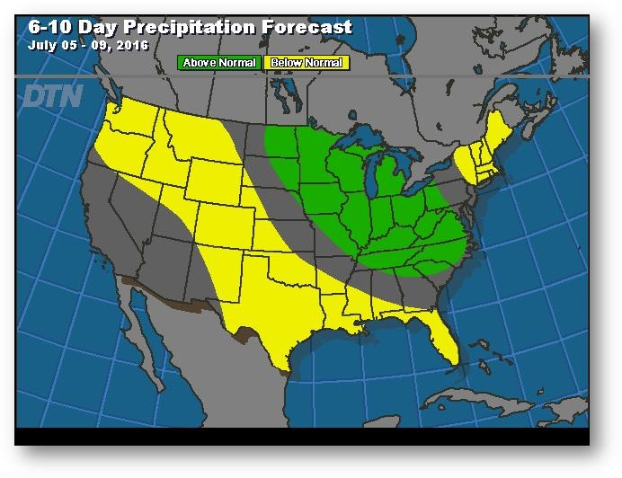 Hier, les prix ont chuté; le contrat de septembre (CU6) a clôturé en baisse de 0,10$. Les prévisions de précipitations à court terme ont déclenché une liquidation agressive de la position longue et la clôture de positions en vue de la publication des rapports d'aujourd'hui. L'affaissement du marché du blé a également été un élément baissier. Évidemment, l'attention aujourd'hui sera tournée vers les rapports du USDA sur les stocks et les superficies, mais il y a d'autres rapports à surveiller. Hier, le rapport sur l'éthanol a indiqué une augmentation de 4,3% de la production à 1,003 million de barils par jour en date du 24 juin. Le mélange essence/éthanol a atteint un nouveau record et les stocks d'éthanol sont aussi en hausse. Les ventes à l'exportation seront annoncées ce matin; le marché s'attend à 700 000 - 1 000 000 tonnes pour la dernière récolte et à 300 000 - 450 000 tonnes pour la prochaine récolte. C'est fin de mois, fin de trimestre et jour de publication de rapport, ce qui devrait bien alimenter le marché aujourd'hui.