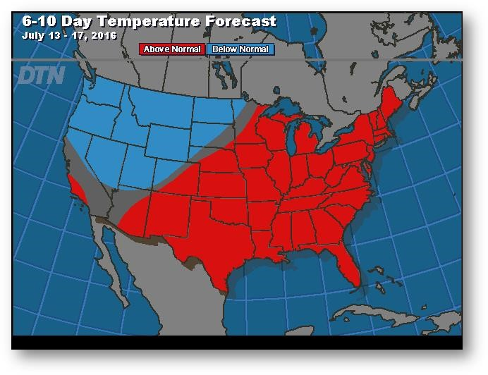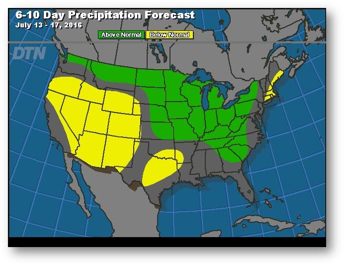 Les conditions météo demeurent le centre d'attention malgré la diminution surprise de la production brésilienne. Si le rendement est près de la ligne de tendance, les États-Unis auraient des stocks de report de plus de deux milliards de boisseaux et la diminution au Brésil n'aura pas une grosse incidence. On attend toujours des températures supérieures à la normale et des précipitations dans la majeure partie du Midwest au cours des deux prochaines semaines.
