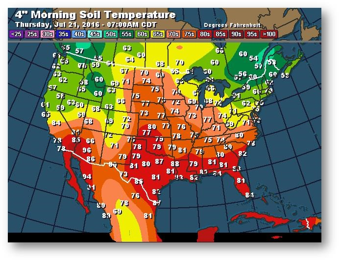 Température du sol en matinée à une profondeur de 4 pouces (degrés Farenheit)