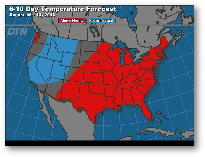 On voit une certaine consolidation près des creux. Les fonds ont ralenti les ventes et les bas prix ont encouragé la demande; le USDA a annoncé une vente de 290 000 tonnes à des acheteurs anonymes hier matin. Le marché met toute son attention sur les conditions météo de la fin de l'été et sur l'évaluation que le USDA fera du rendement dans son rapport sur l'état de l'offre et de la demande la semaine prochaine. Les prévisions météo demeurent non menaçantes au cours des deux prochaines semaines, mais il y a quelques inquiétudes relatives à l'effet que les températures noctures chaudes pourraient avoir sur le rendement.